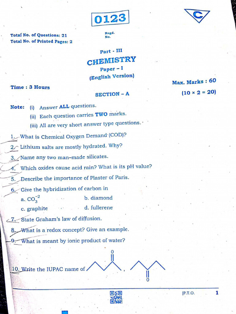TS Inter 1st Year Chemistry 2024 March previous Question Papers IPE ...