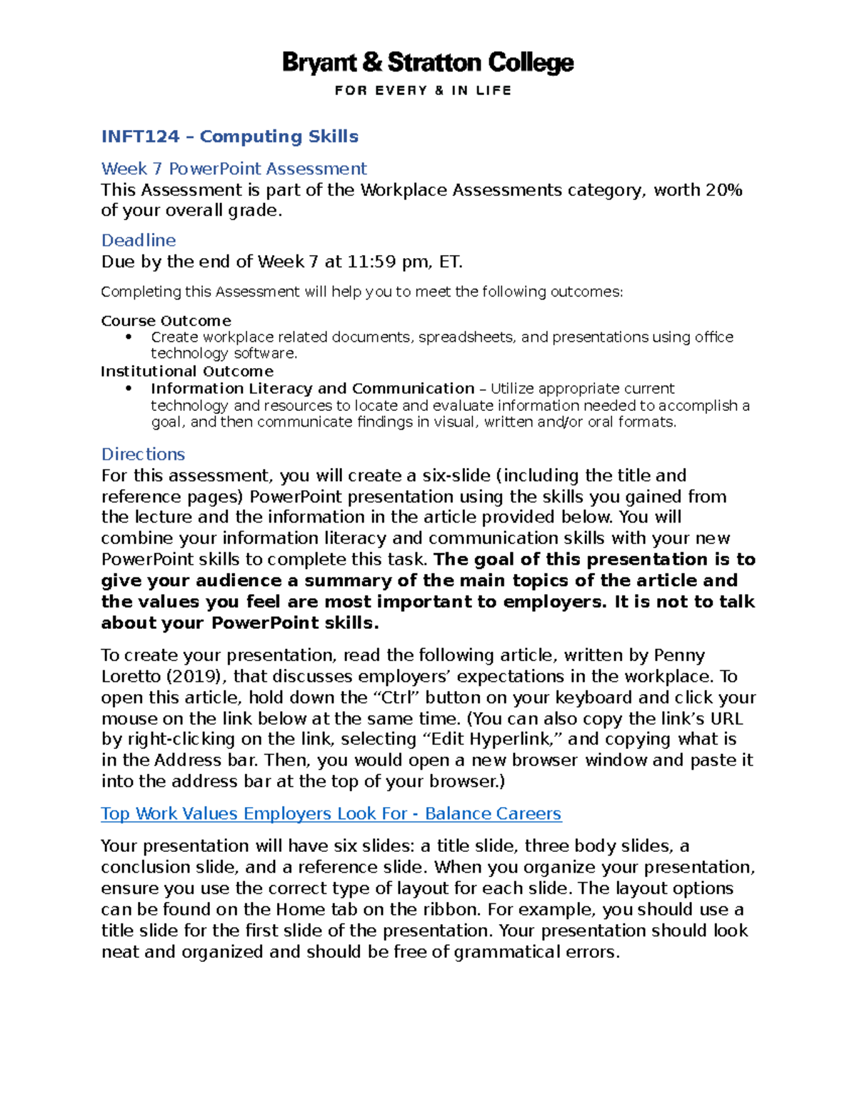 INFT124 Computing Skills Week 7 PowerPoint Assessment - Studocu