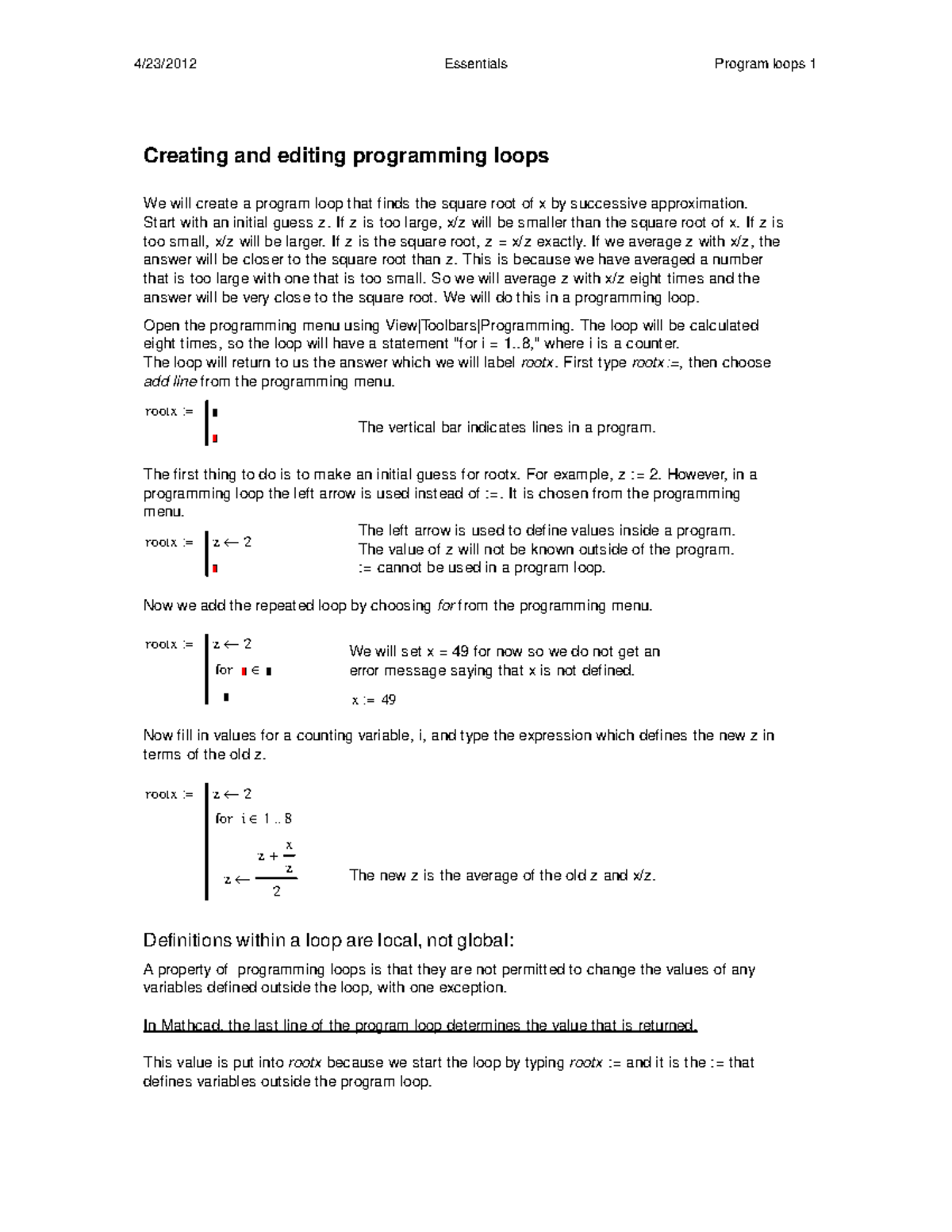 0 Essentials Program Loops - Creating and editing programming loops We ...