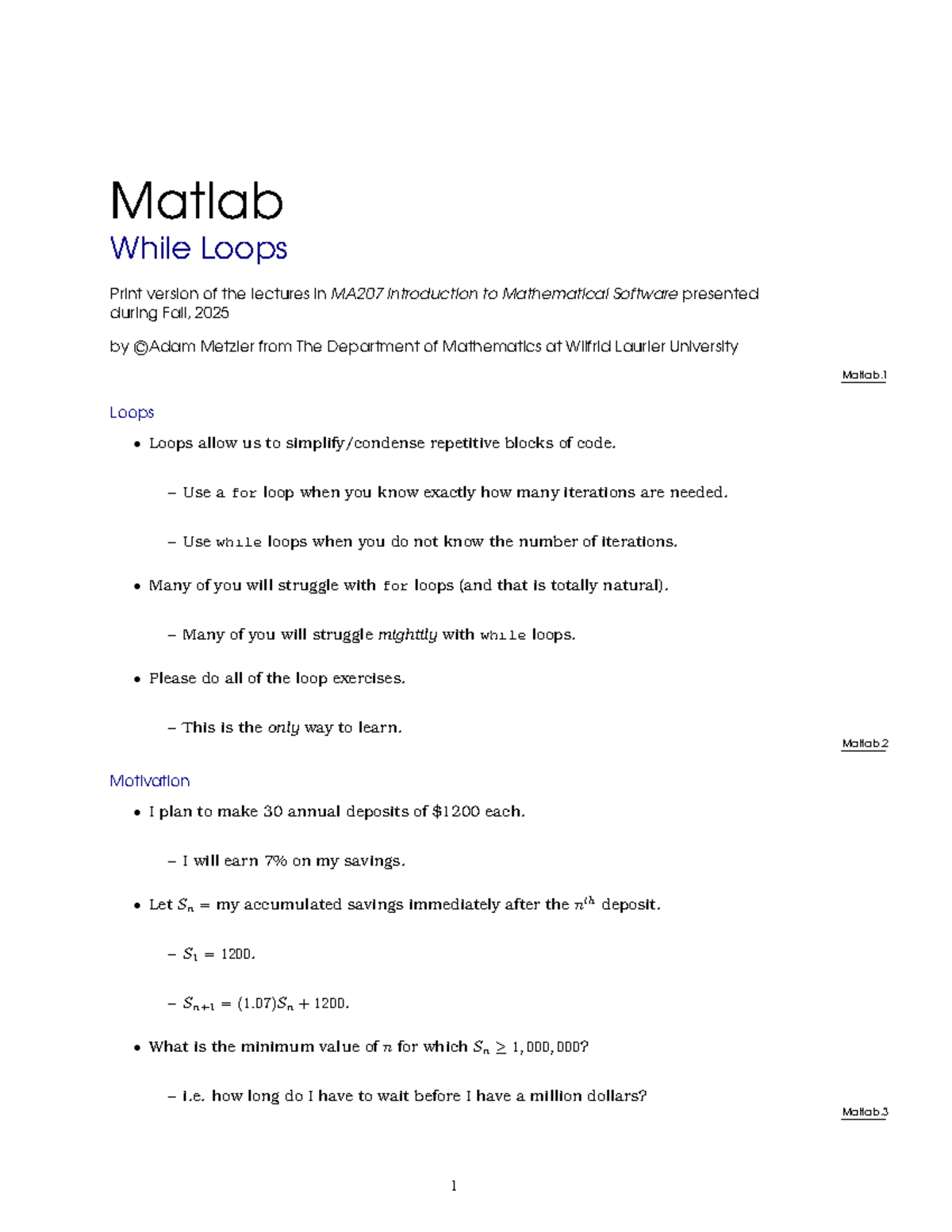 MA207 While Loops Lecture Notes - Fall 2025 - Studocu