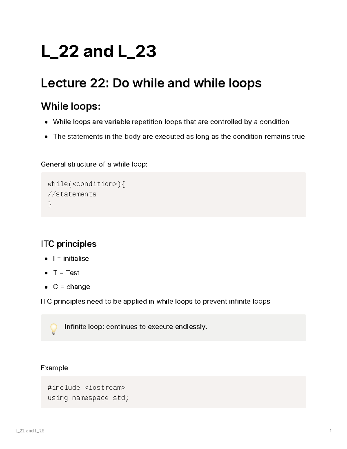 ITC 101: Summary of Lecture 22 and 23 - Loops and Their Structures ...