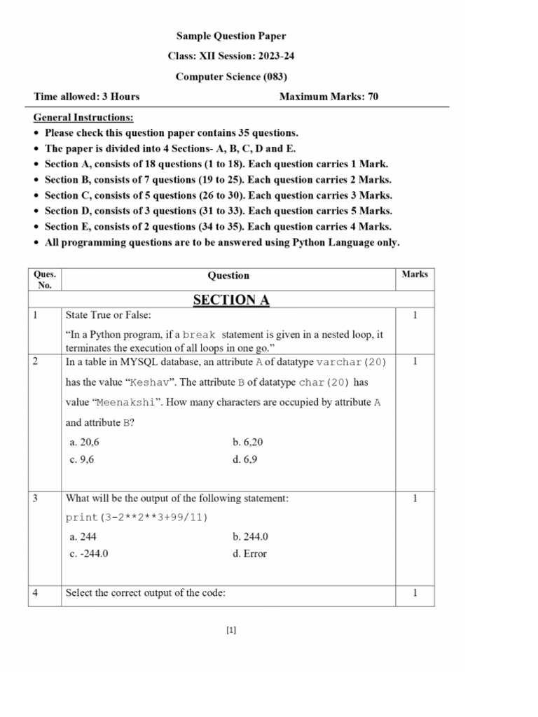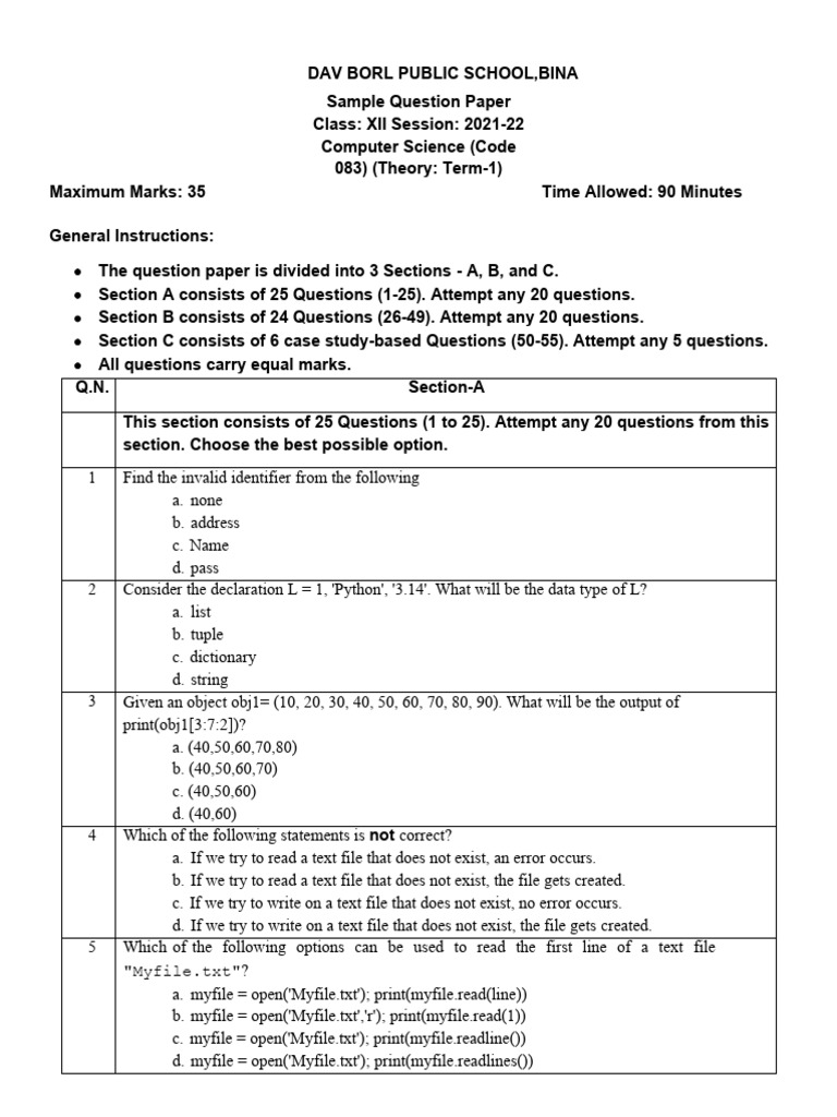 ComputerScience-SQP.pdf - Class: XII Session: 2022-23 Computer Science ...