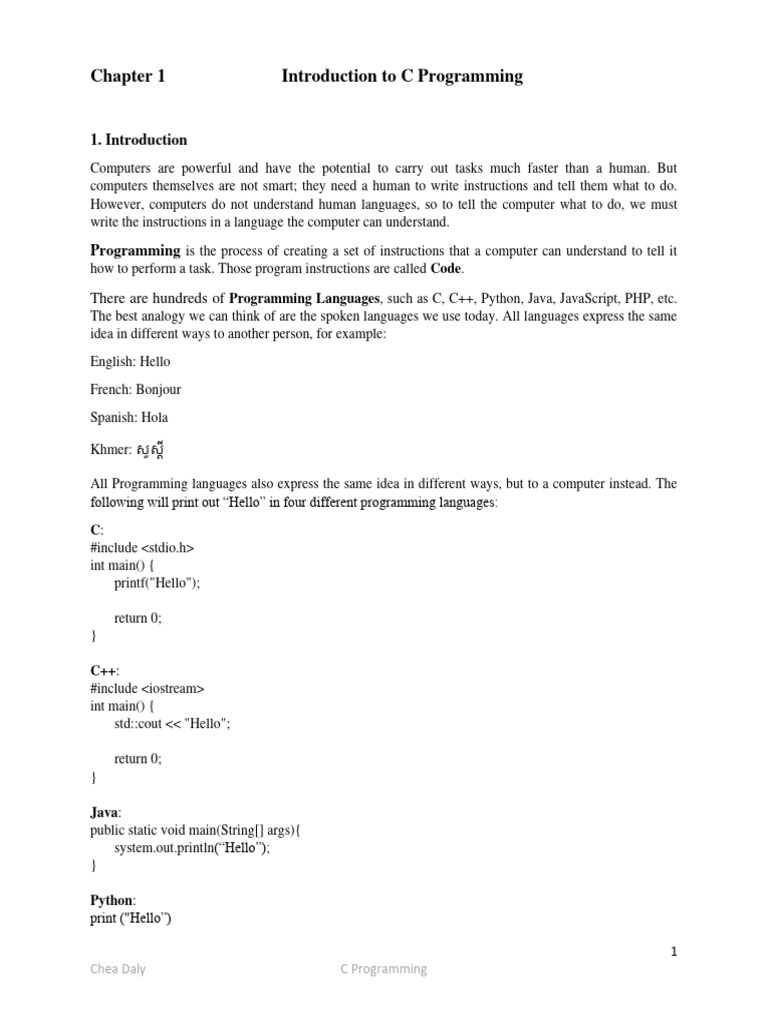 Chapter 1-Introduction To Computer Programming | PDF | Programming ...