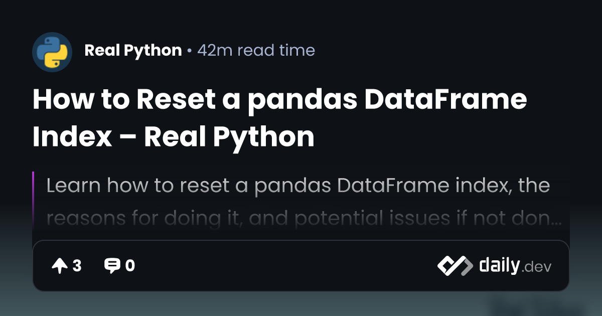 How to Reset a pandas DataFrame Index – Real Python | daily.dev