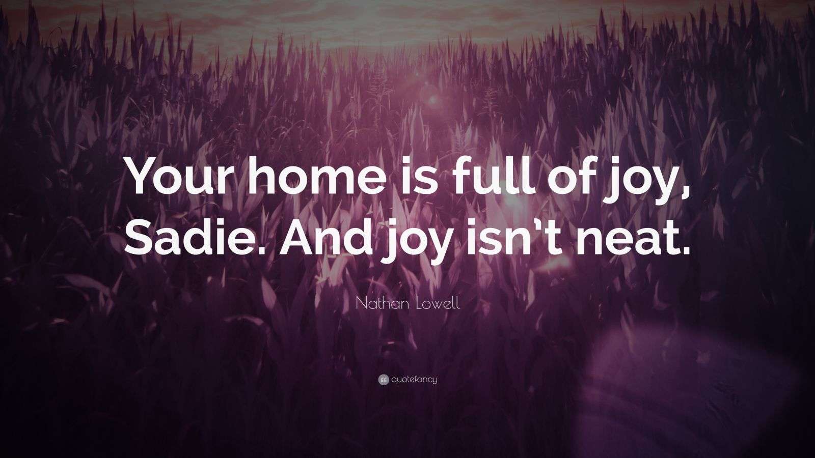 Nathan Lowell Quote: “Your home is full of joy, Sadie. And joy isn’t neat.”