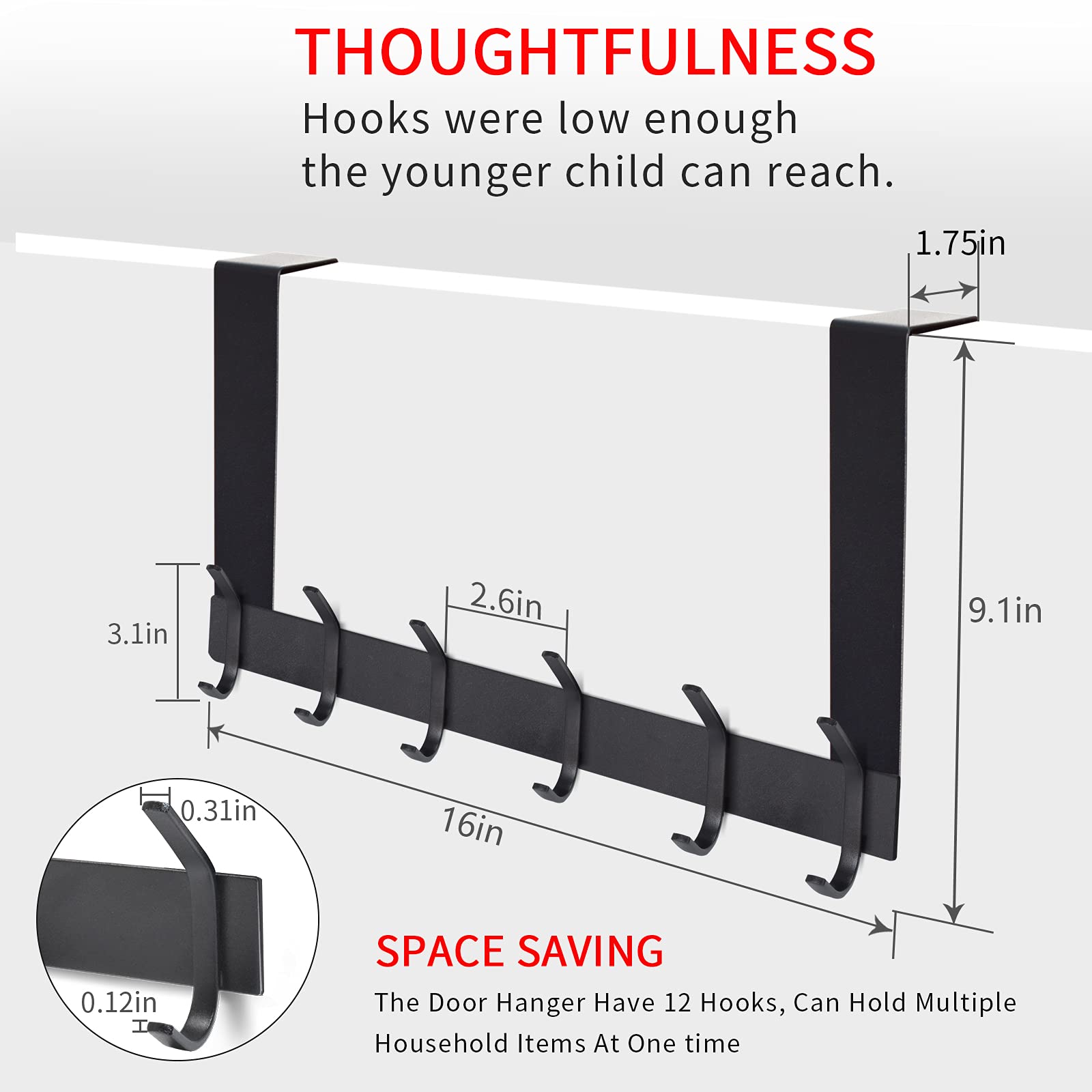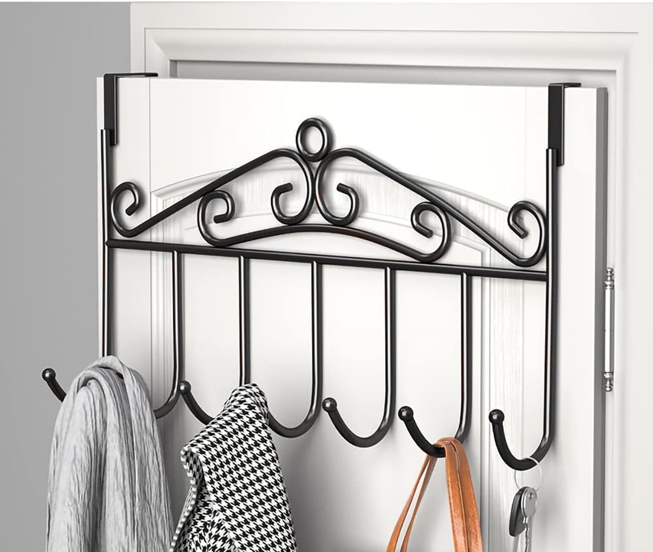 Heavy-Duty Carbon Steel Door Hook Hanger Rack (1 pc / 6 Hook / Black ...