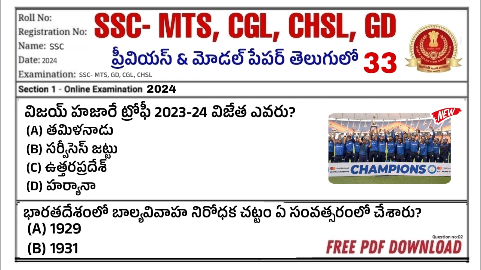 SSC MTS Model papers -33 – RK Tutorial