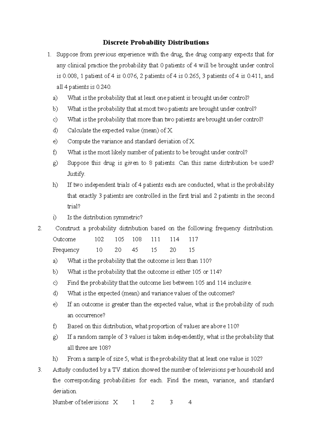 Understanding Probability Distributions for Discrete Random | Course Hero