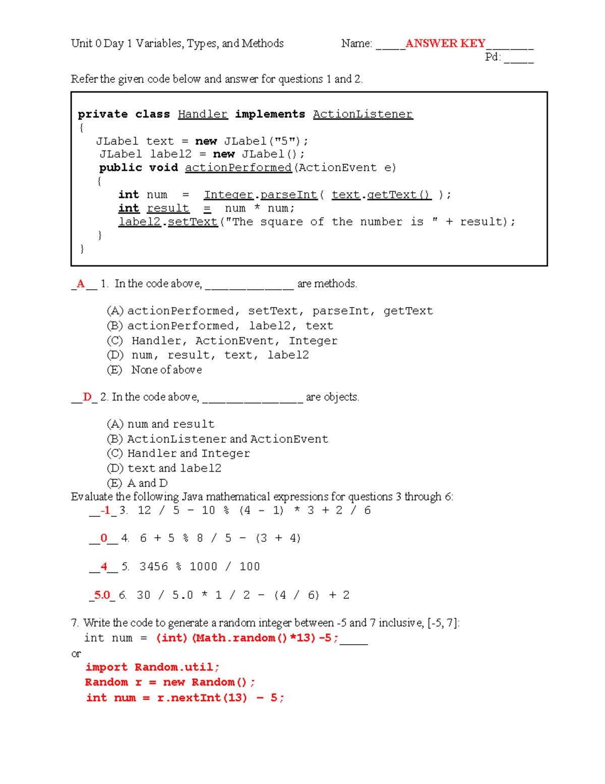 Java Basics: Variables, Types, and Methods - Unit 0 Day 1 - Studocu