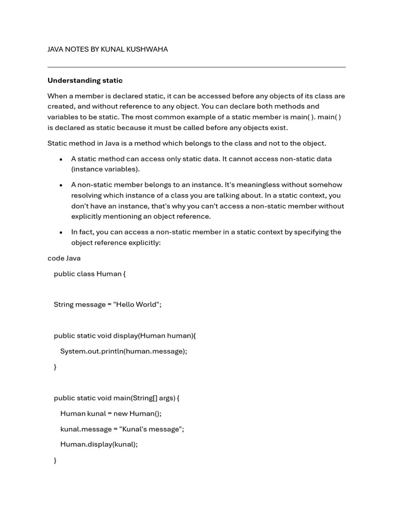 Core Java Notes | PDF | Class (Computer Programming) | Java ...