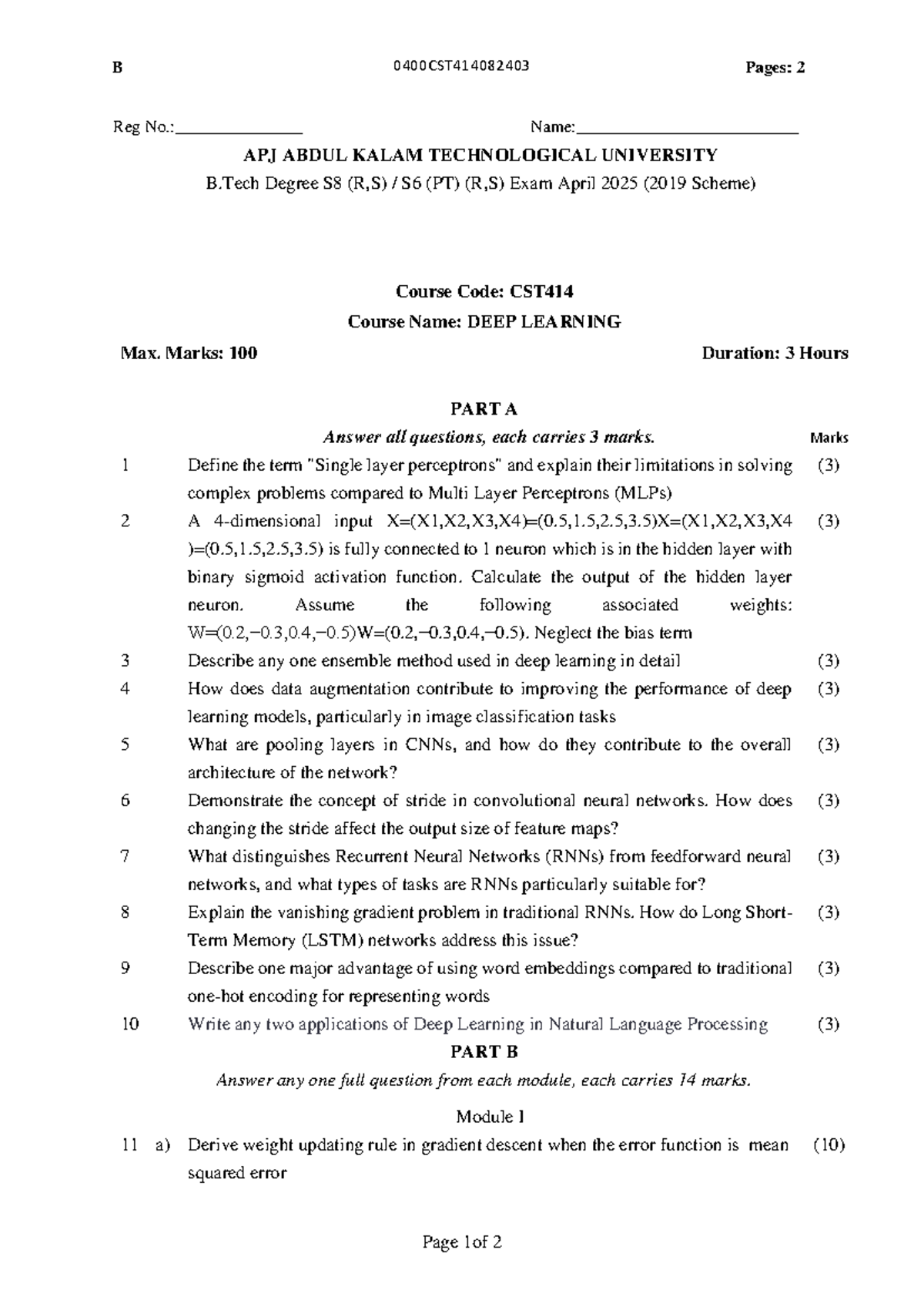 CST414 Deep Learning Exam Practice - April 2025 - Studocu