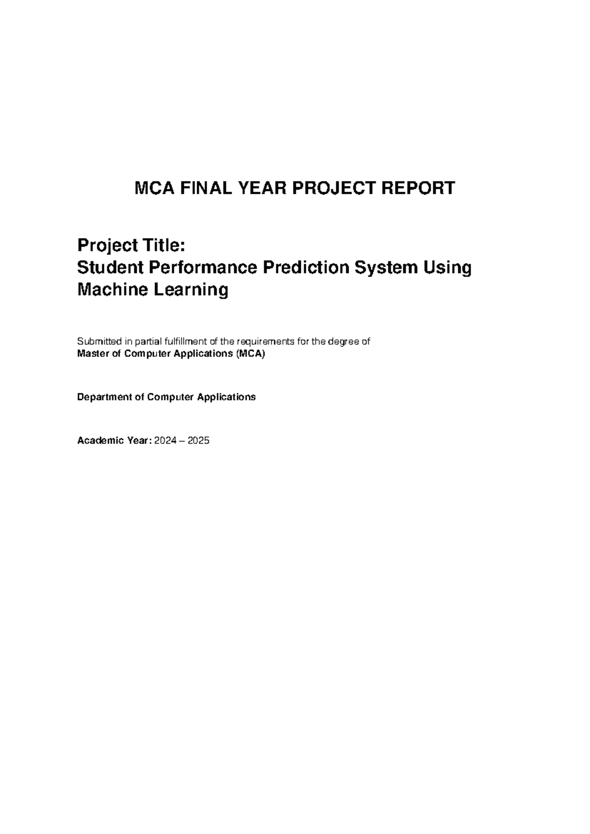 MCA Final Year Project Report: Student Performance Prediction System ...