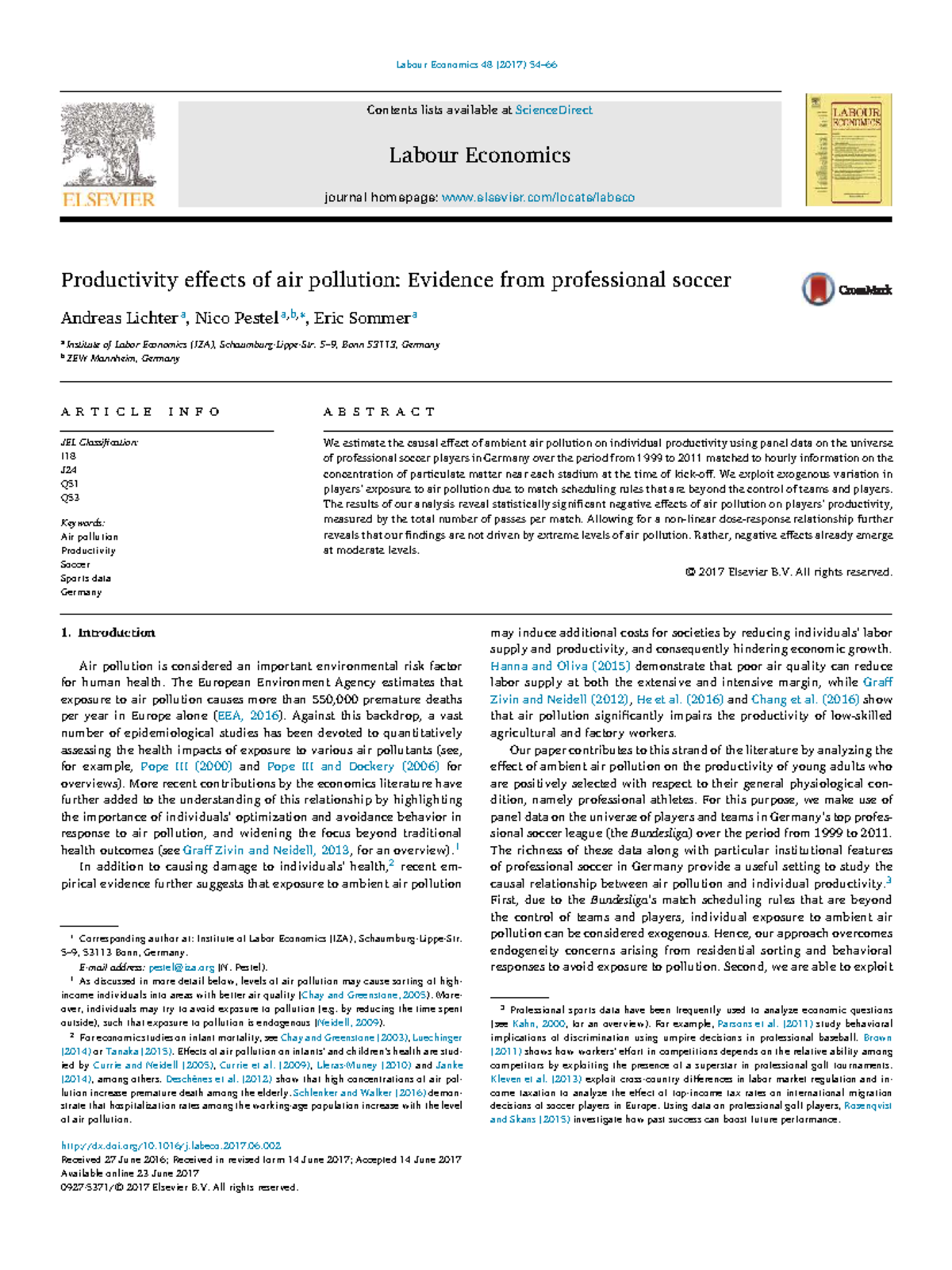 Labour Economics 48: Productivity Effects of Air Pollution in Soccer ...