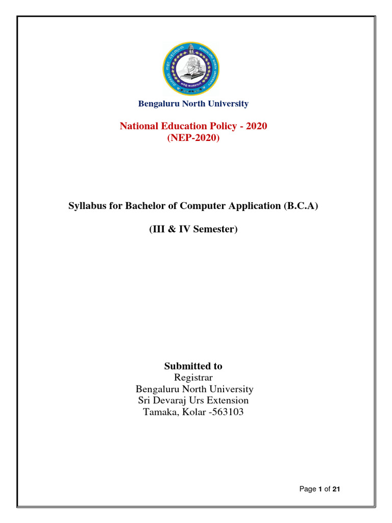 2.16 UG BCA NEP Syllabus 3 4th Sem 2022 23 Onwards 17 11 22 | Download ...