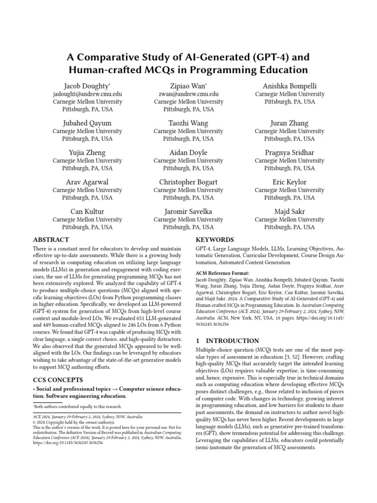 AI Vs Human MCQs in Programming Education ArXiv2312.03173 | PDF ...