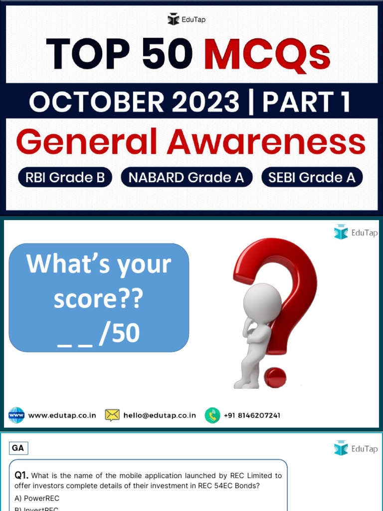 13th October 2023 - Top 50 MCQS October 2023 Part 1 | PDF | Business ...