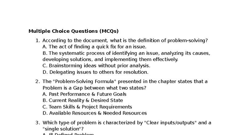 Chapter 3 MCQs - Problem Solving & Management (Course Code: PRM101 ...
