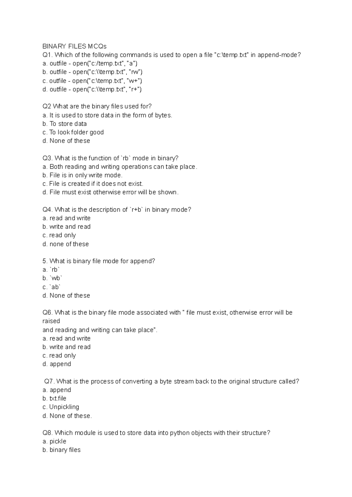 Binary Files MCQs for Programming Course (CS101) - Studocu