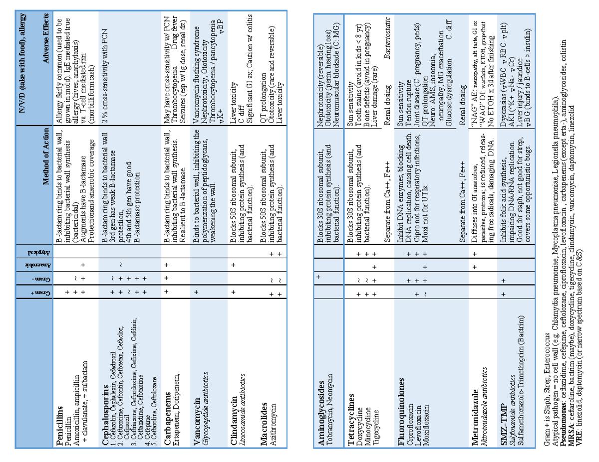 Antibiotic Drug Classes Overview: Mechanisms & Side Effects - Studocu