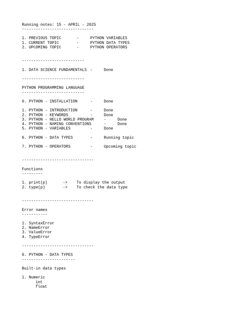 Data Science - Python Data Types, Operatros - 15 - 04 - 2025 | PDF ...