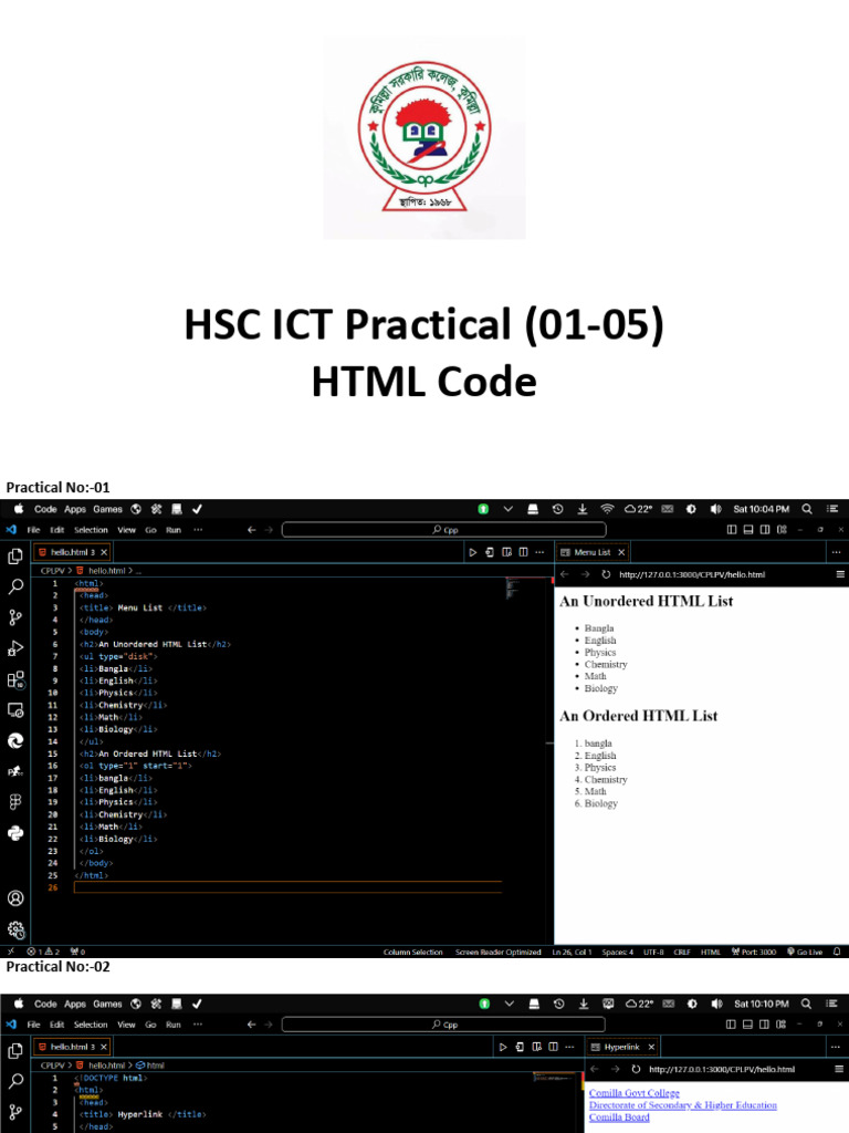 HSC ICT Practical HTML C Programming Code01 10 | PDF