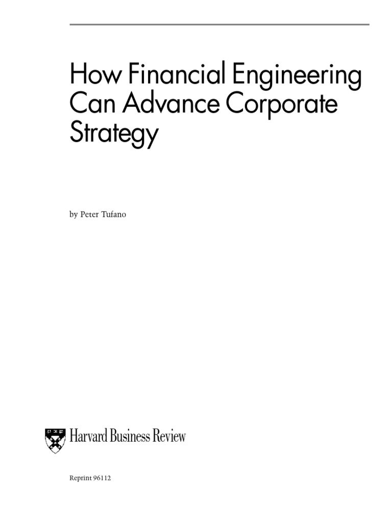 Tufano How Financial Engineering Can Advance Corporate Strategy | PDF ...