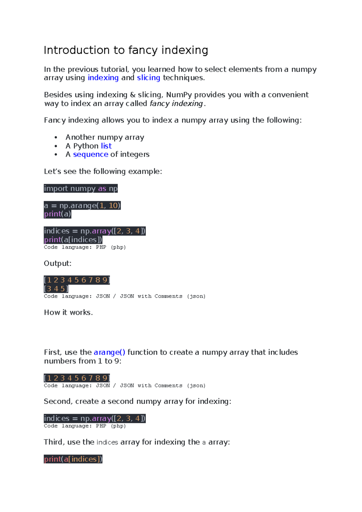 Numpy Fancy & Boolean Array Indexing Tutorial - Studocu