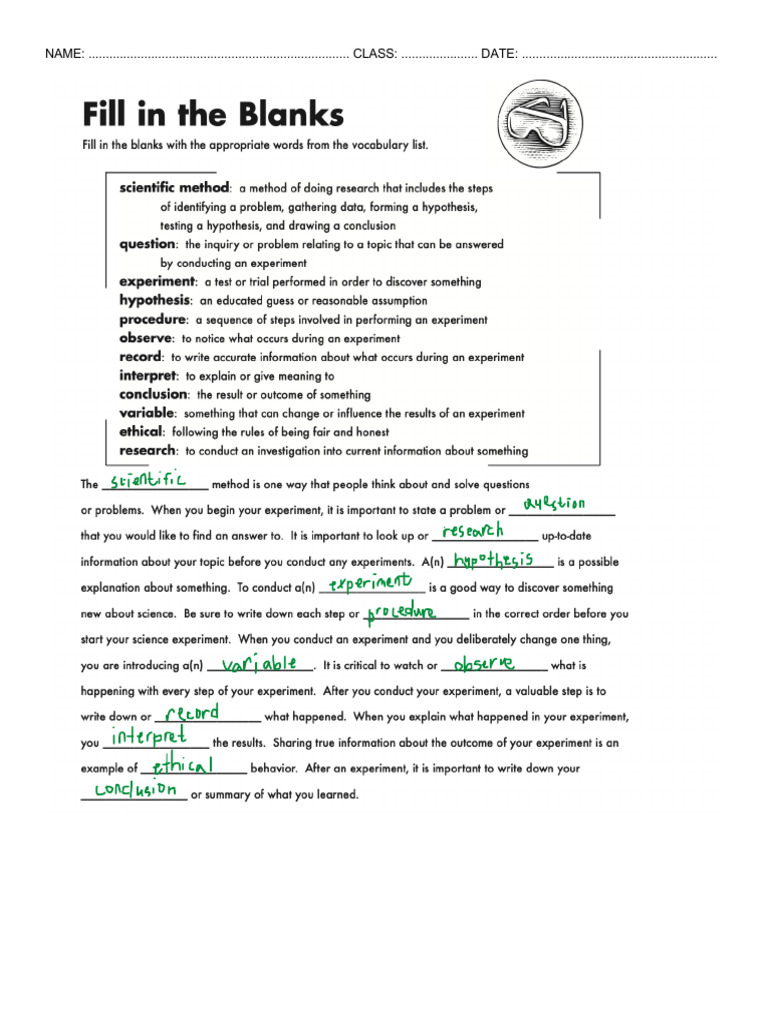 Scientific Method Worksheets For Kids Free Scientific Method Fill In