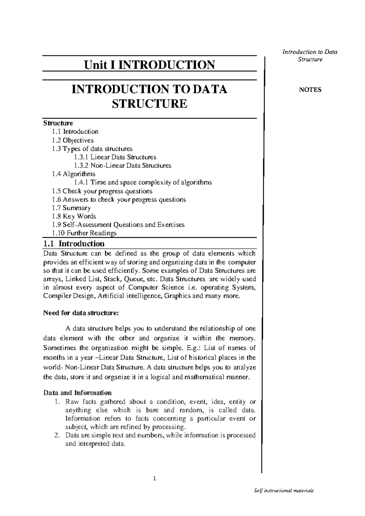 Unit-1 - Lecture notes 1 - Data Structures & Algorithms - Studocu