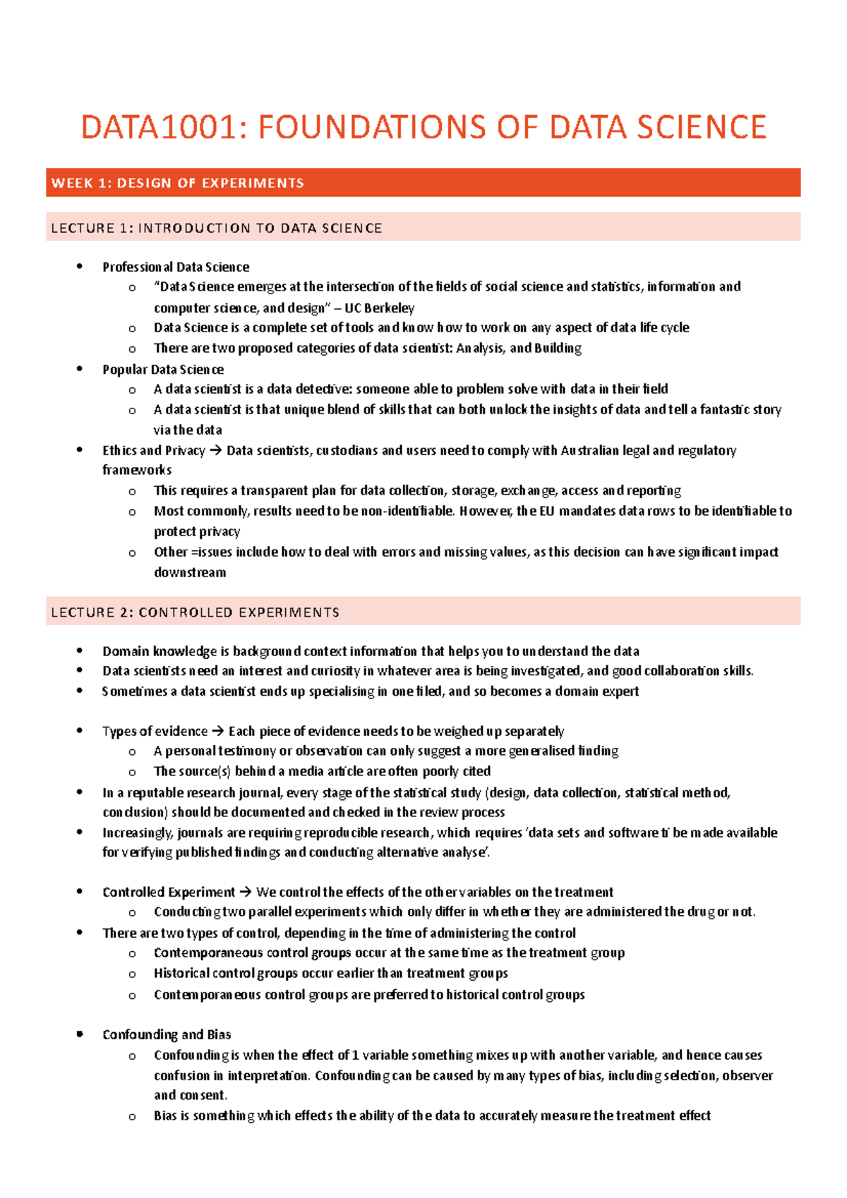DATA1001 Notes - DATA1001: FOUNDATIONS OF DATA SCIENCE WEEK 1: DESIGN ...