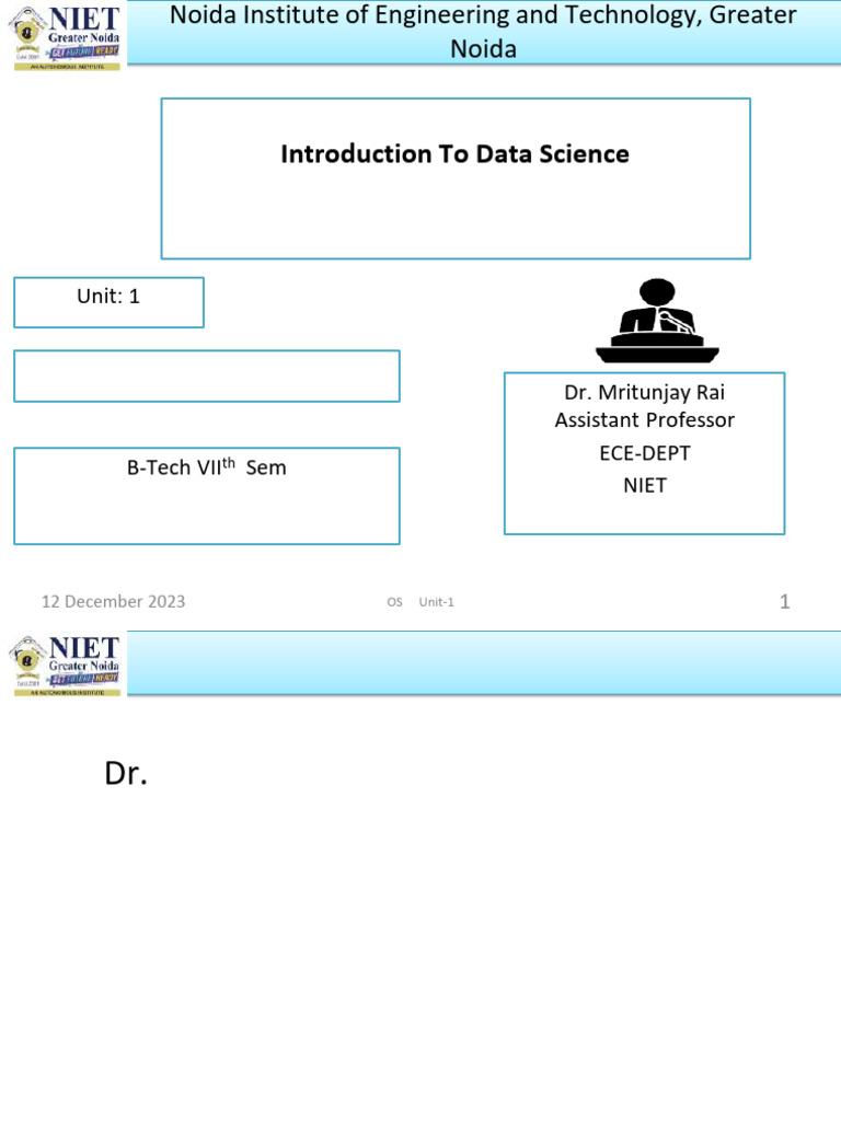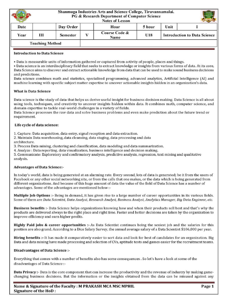 IDS UNIT I - .................. - Introduction to Data Science Year/Sem ...