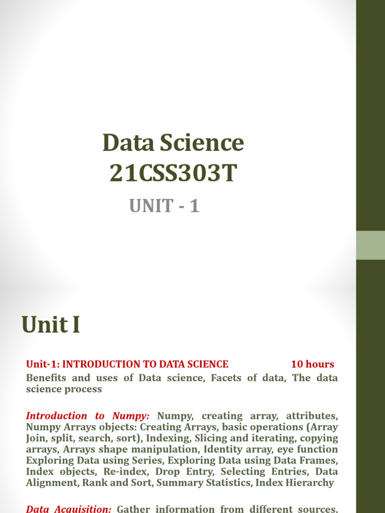 Unit I Notes Data Science and Visualization NGS - HONORS - DATA SCIENCE ...