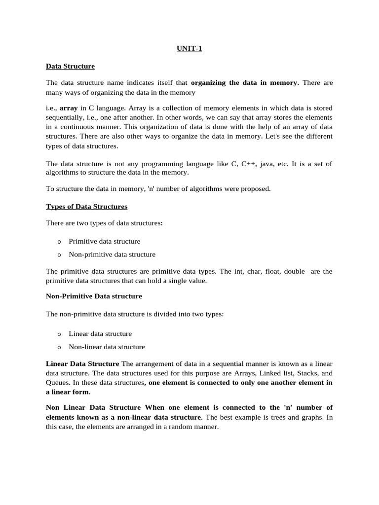 Unit-1-notes - data structures notes - Data Structures - Studocu