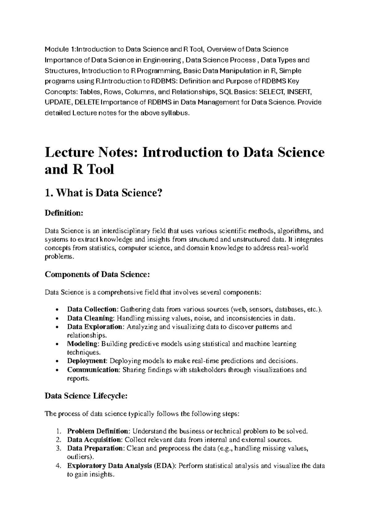 Lecture Notes: DSM Module 1 - Introduction to Data Science & R - Studocu