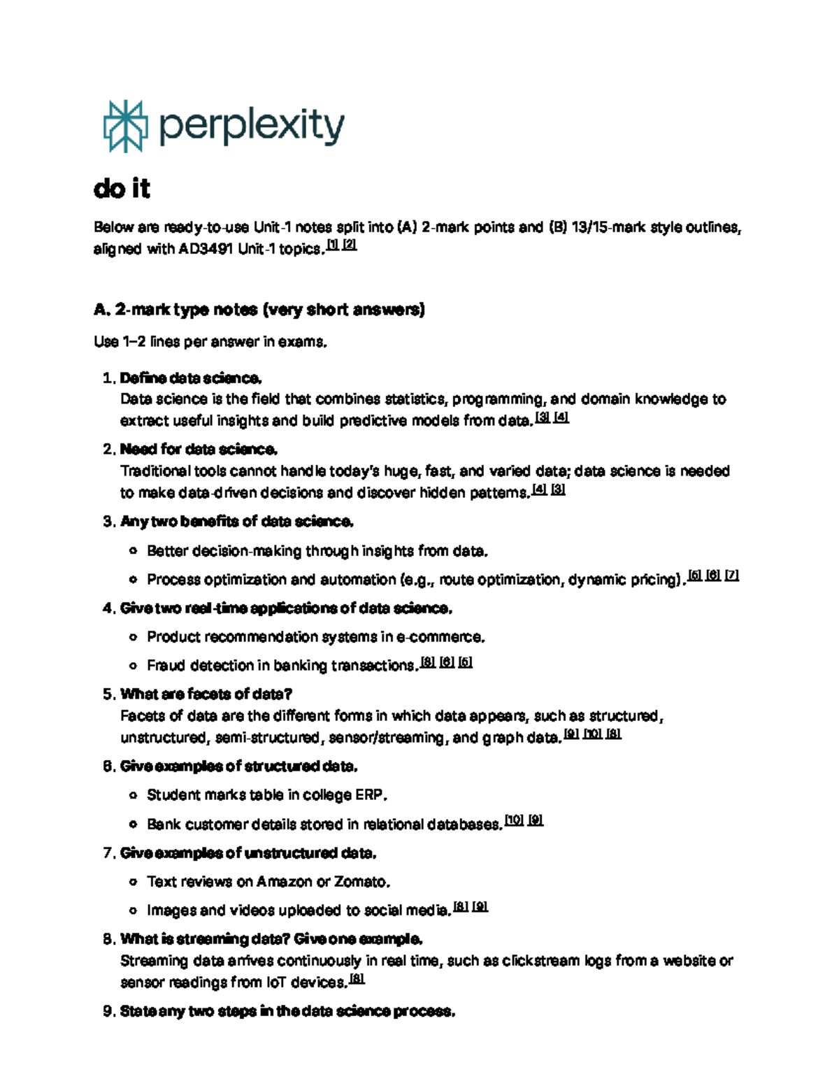 Unit 1 - Comprehensive Notes on Data Science Fundamentals - Studocu
