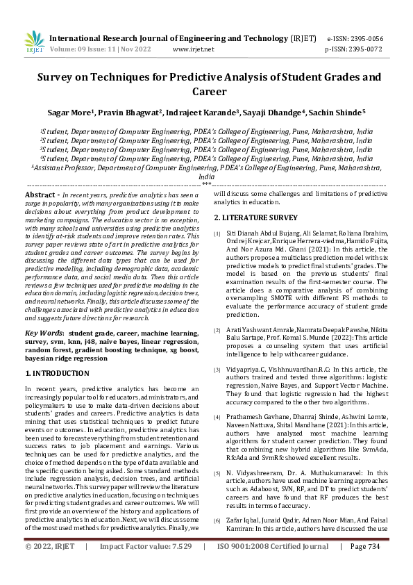 (PDF) Survey on Techniques for Predictive Analysis of Student Grades ...