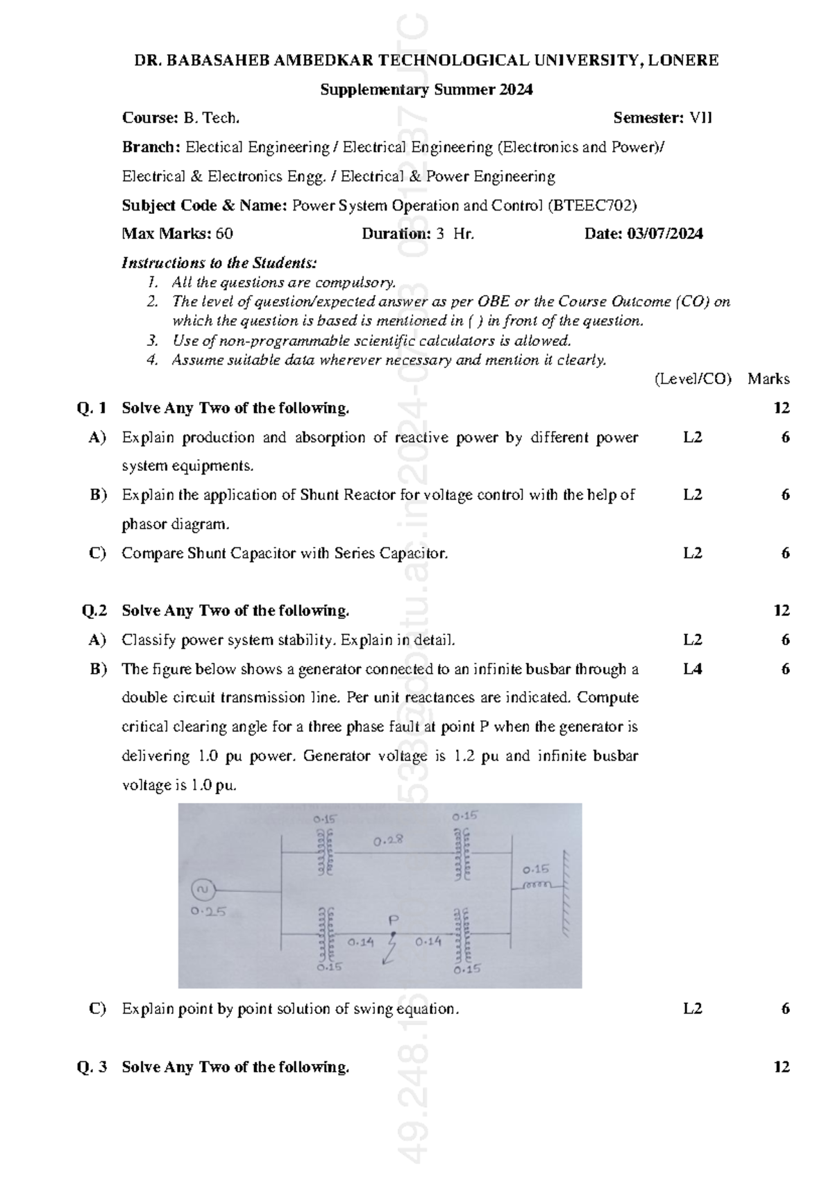 Power System Operation and Control - Max Marks: 60 Duration: 3 Hr ...