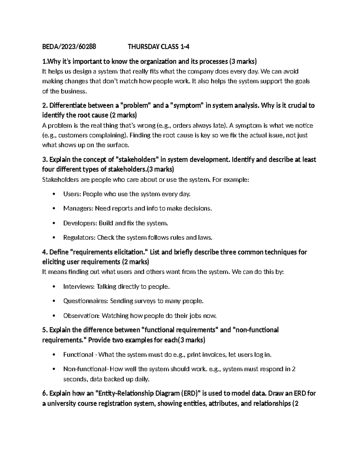 Database System Analysis and Design: Thursday Class Notes - Studocu