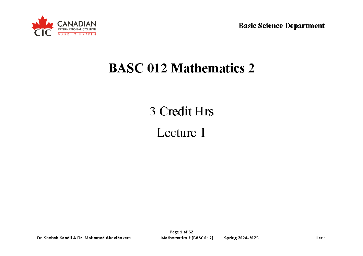 Mathematics 2 (BASC 012) Lecture Notes - Spring 2024-2025 - Studocu