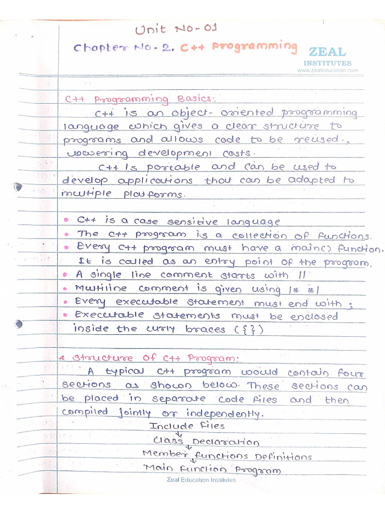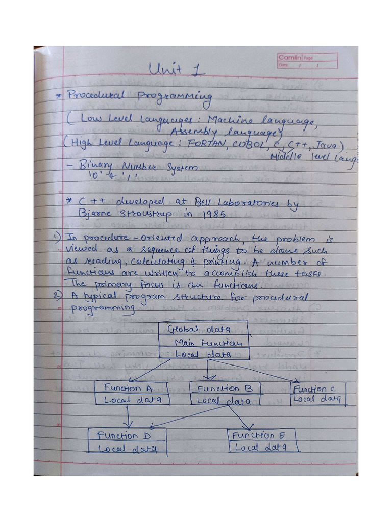 Oop unit-I hand written notes - Computer Engineering - Studocu