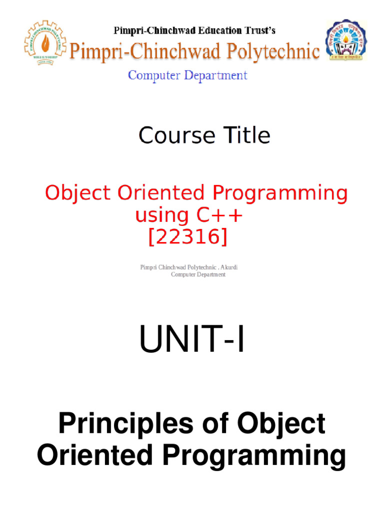 OOP Unit 1 - Foundation of Object- Oriented Programming | PPTX