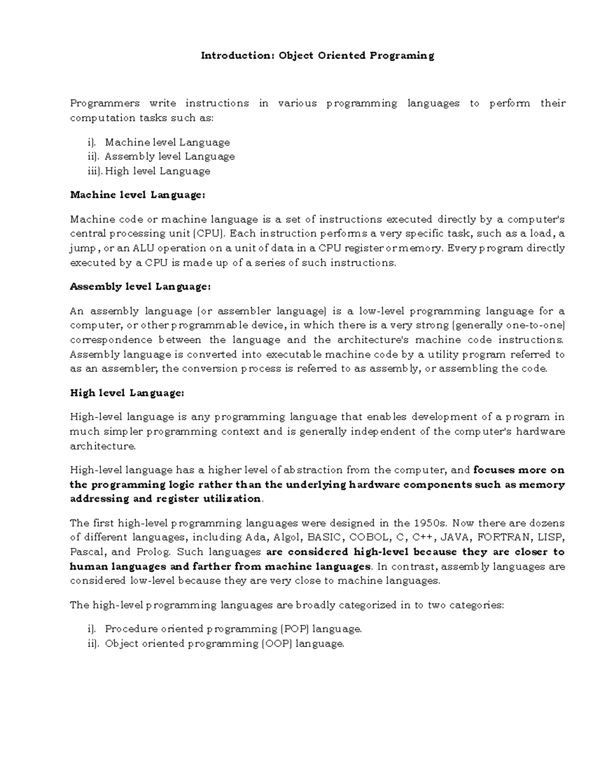 Object Oriented Programming (NOTES)1 - EDU NOTES