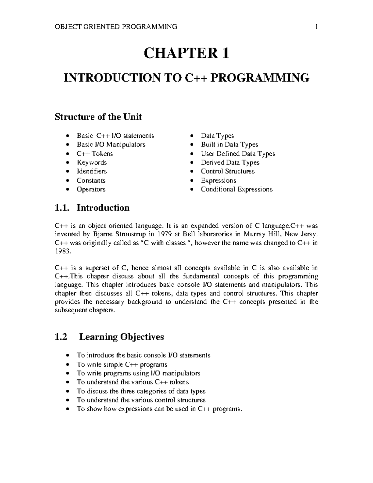 OOP UNIT-1 Notes - Nil - CHAPTER 1 INTRODUCTION TO C++ PROGRAMMING ...