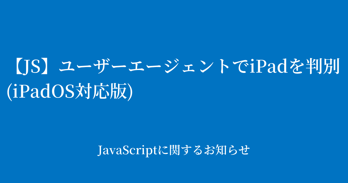 【JS】ユーザーエージェントでiPadを判別(iPadOS対応版) | JavaScriptに関するお知らせ