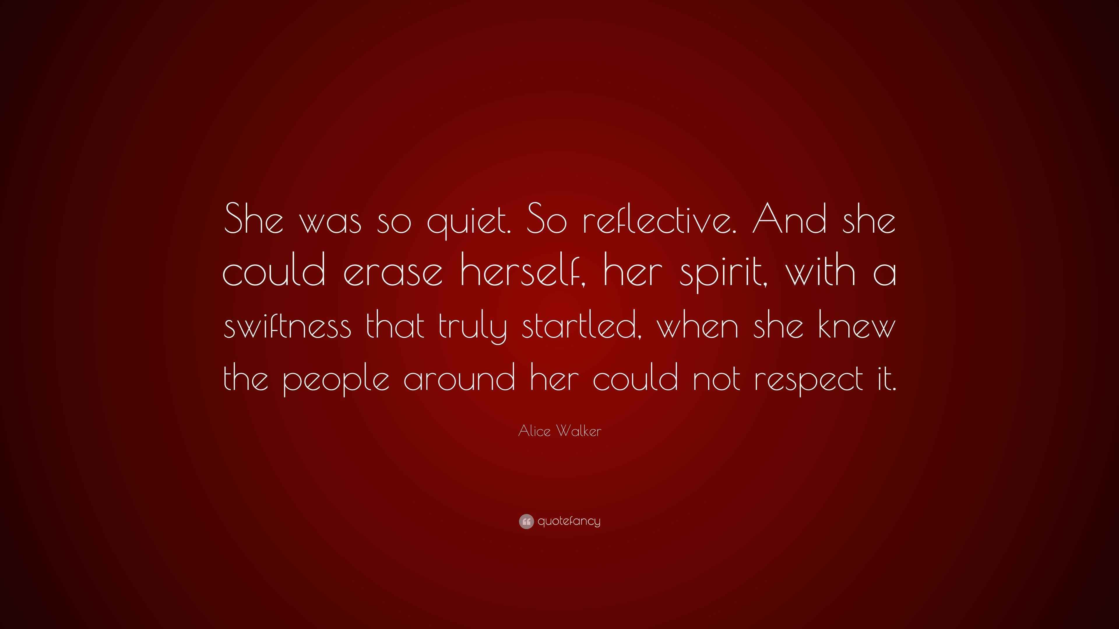 Alice Walker Quote: “She was so quiet. So reflective. And she could ...