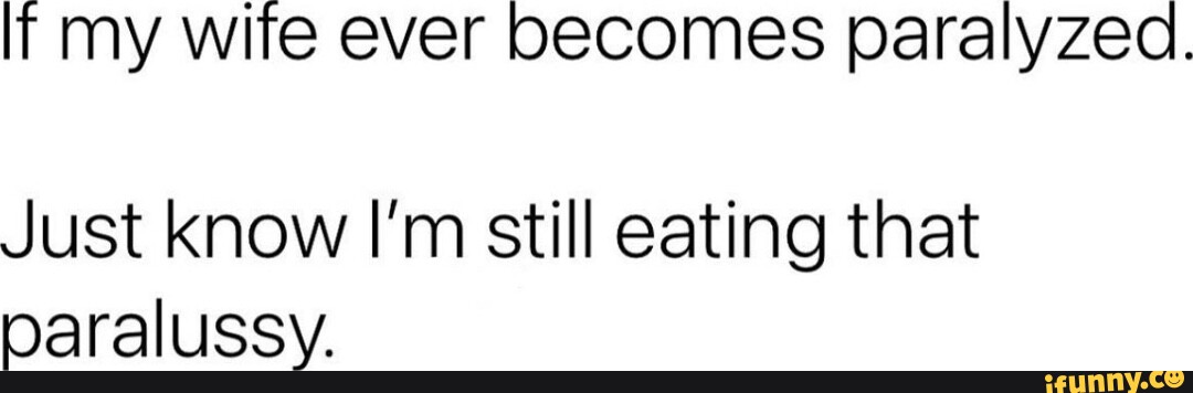 IT my wife ever becomes paralyzed. Just know I'm still eating that ...