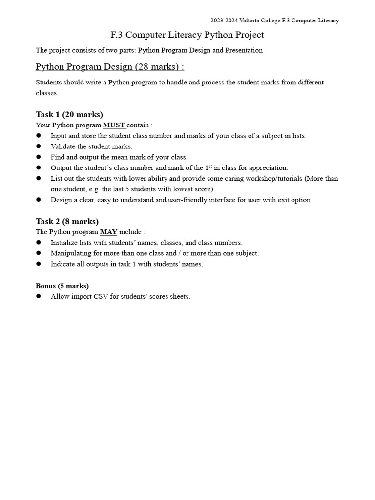 Based on this image's title: “F.3 CL Python Project 23-24 | PDF | Python (Programming Language ...”