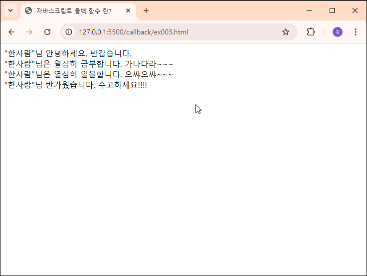 [JavaScript] 콜백(Callback) 함수 3(인사하기)