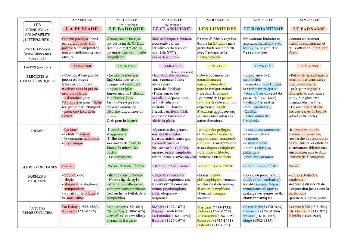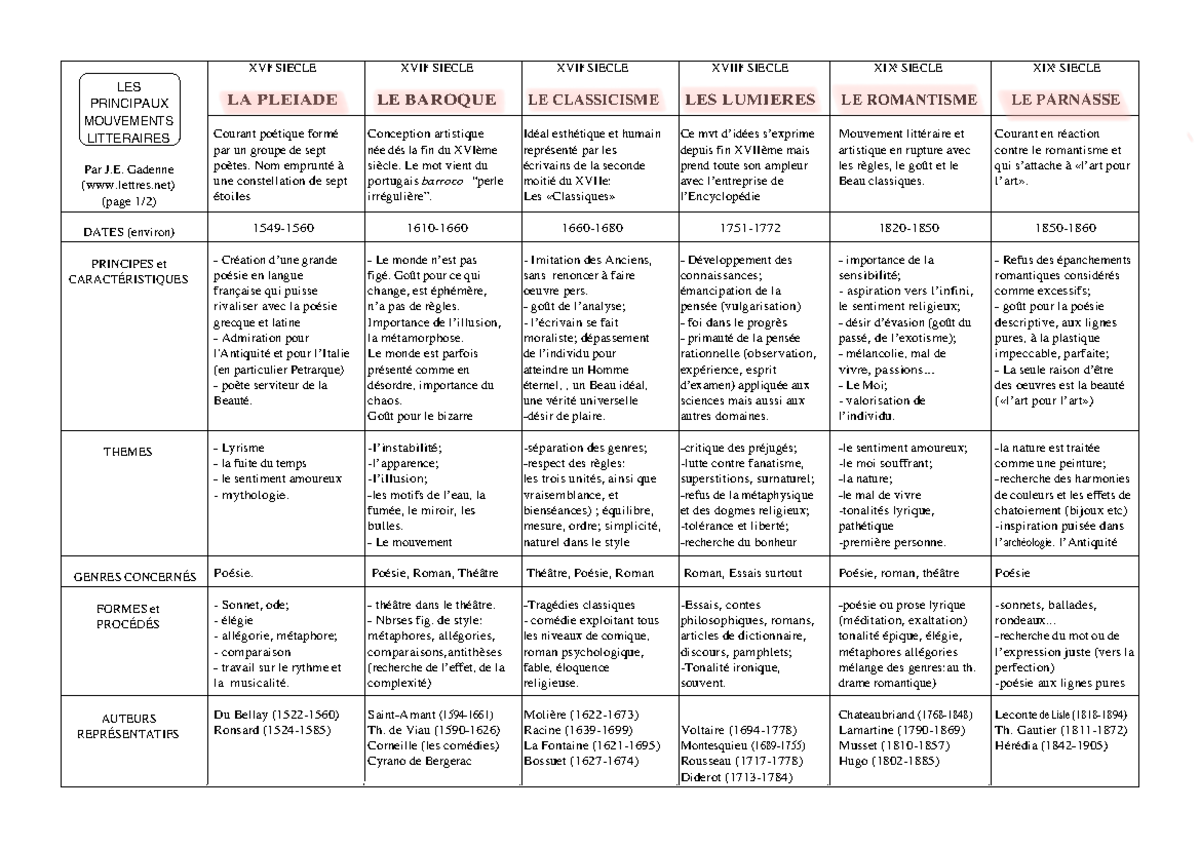 Image - Tableau récapitulatif sur les mouvements littéraires 1 - Les ...