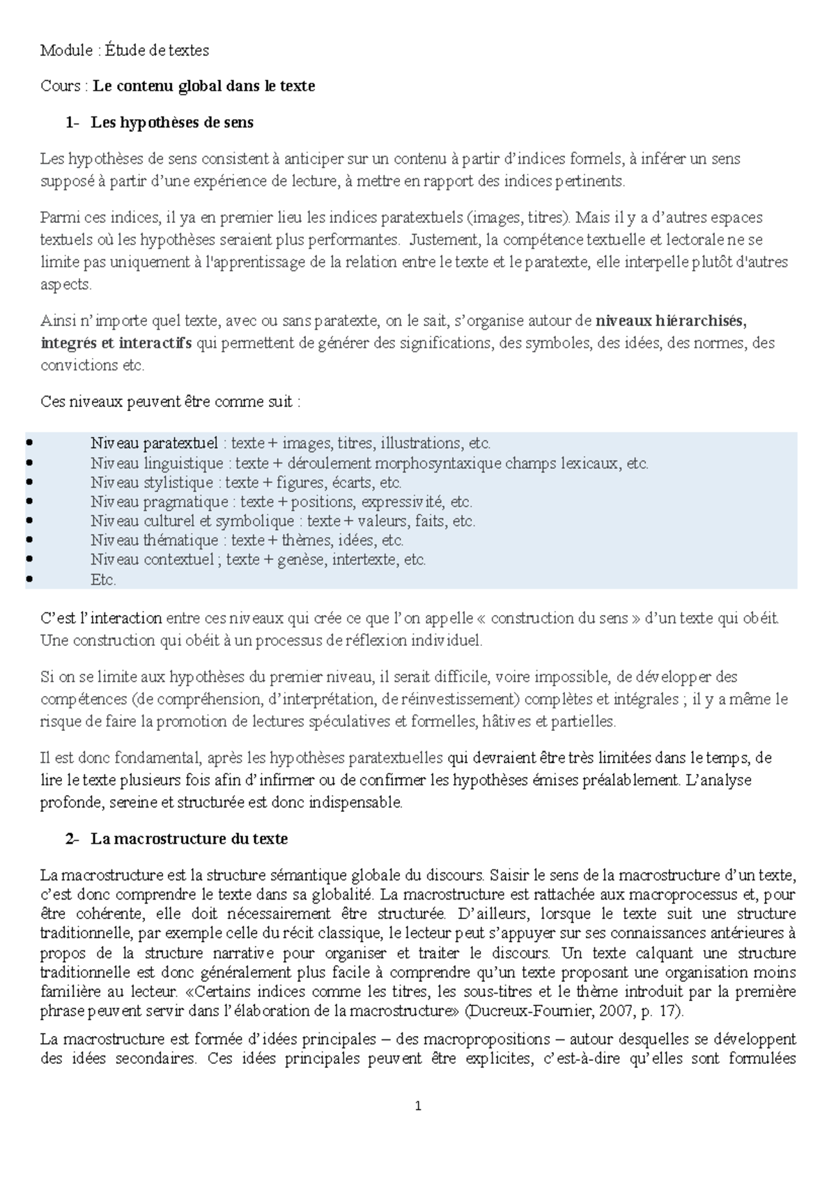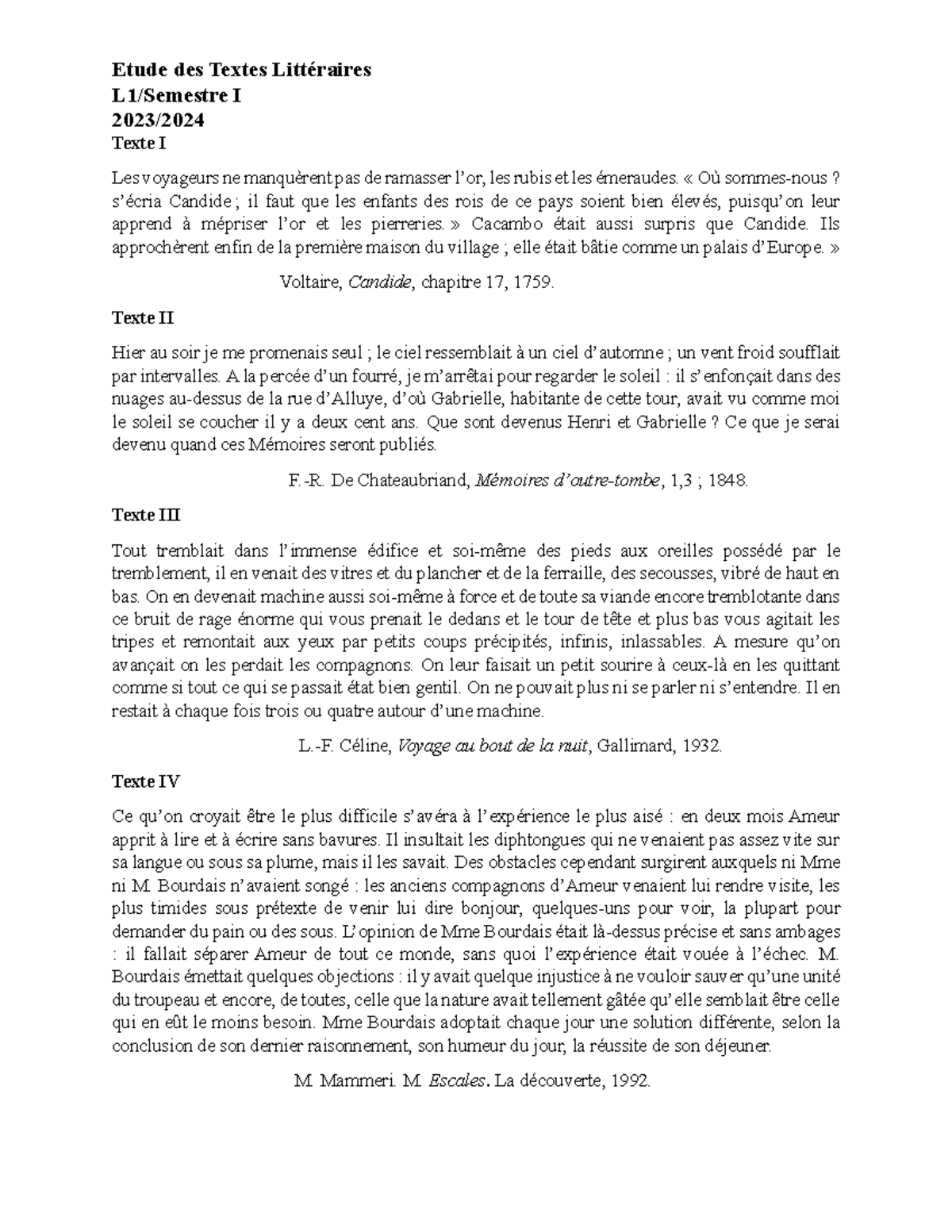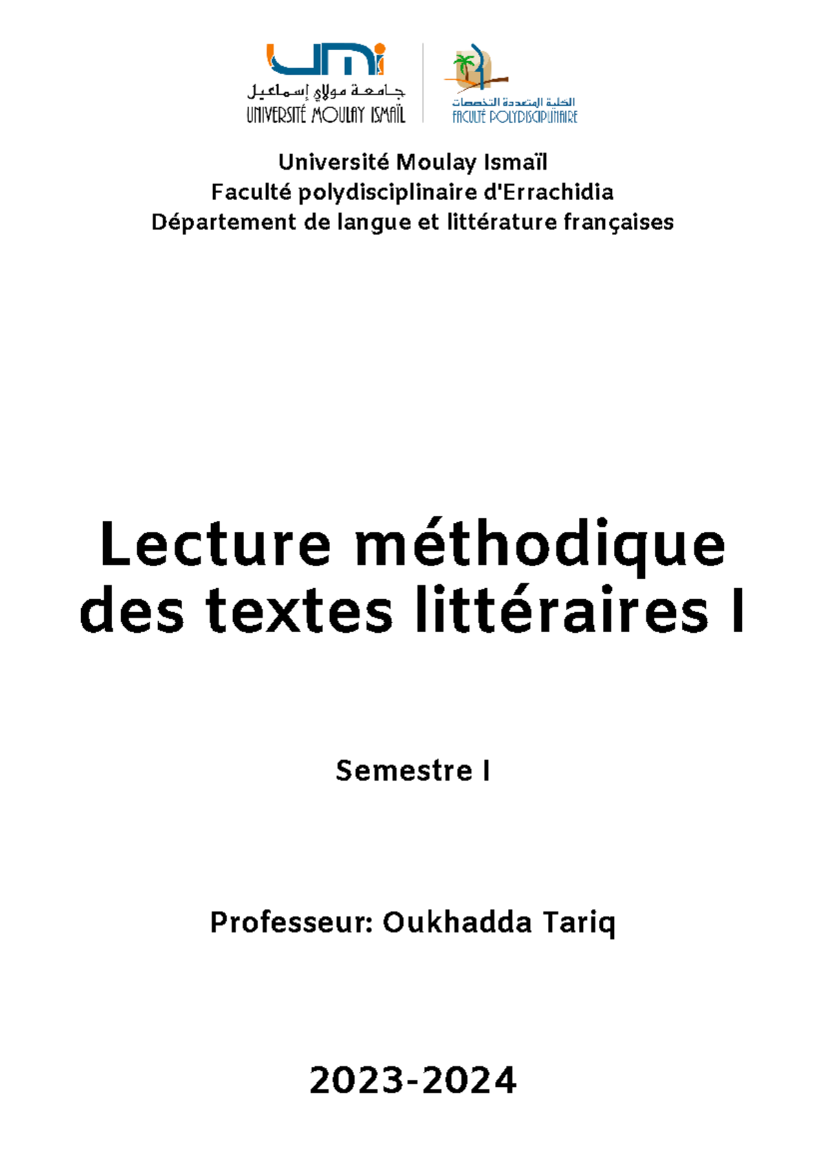 Lecture Méthodique des Textes Littéraires - Semestre I (2023) - Studocu